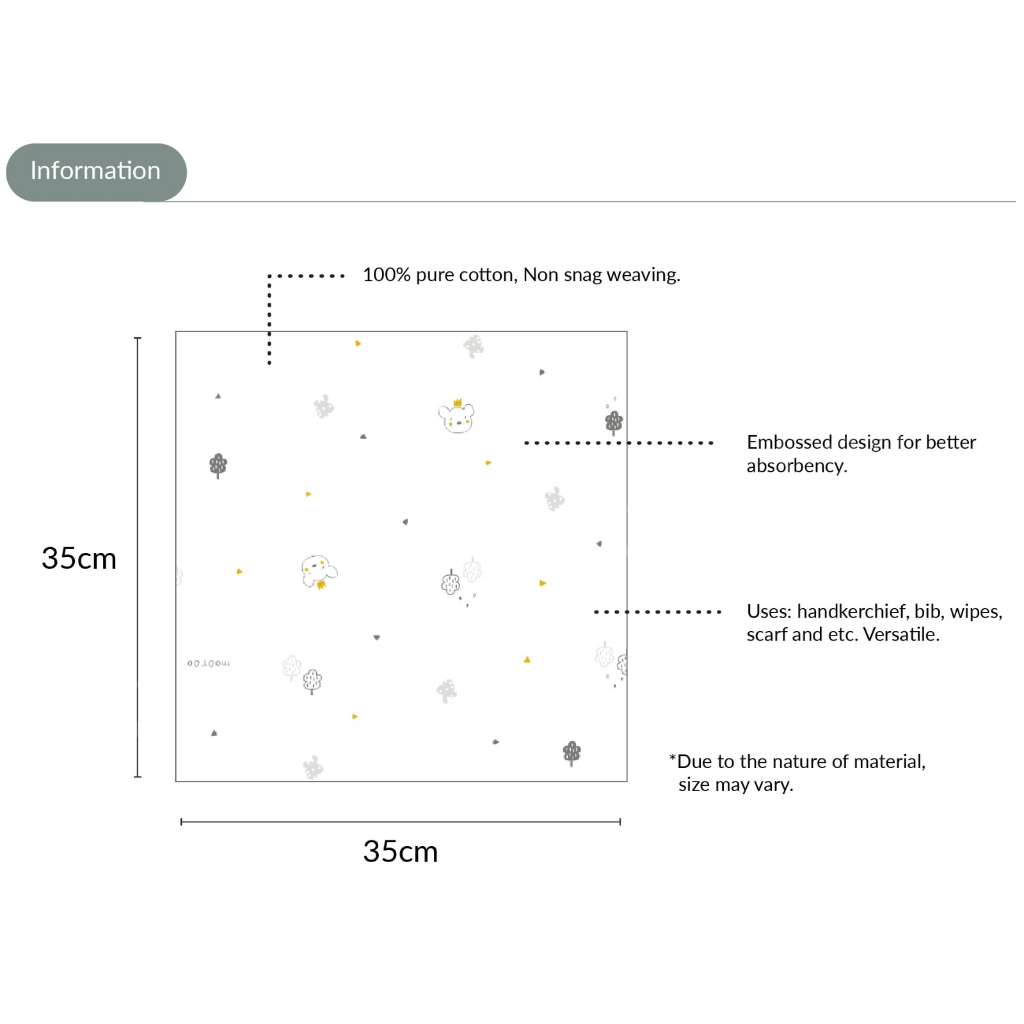 Mooroo - Korea Embossing Gauze 100% Cotton Handkerchief: SMILE BABY